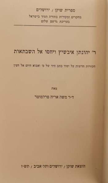 ר' יהונתן איבשיץ ויחסו אל השבתאות : חקירות חדשות על יסוד כחב היד של ס' ואבוא היום אל העין / משה אריה פרלמוטר